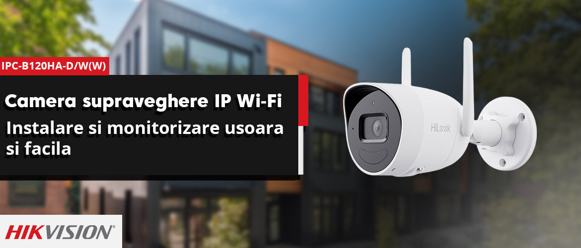Camera supraveghere ip wireless wifi hikvision hilook ipc-b120ha-d/w(w),2.8 mm 2 mp, ir 30 m, slot card- 1 X Camera supraveghere IP wireless Wi-Fi Hikvision IPC-B120HA-D/W(W)