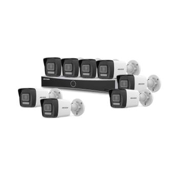 Sistem supraveghere IP exterior basic HikVision KIT-HIK-B8EXT4MP-HL30M-POE, 8 camere, 2 MP, 2.8 mm, IR / lumina alba 30 m, PoE
