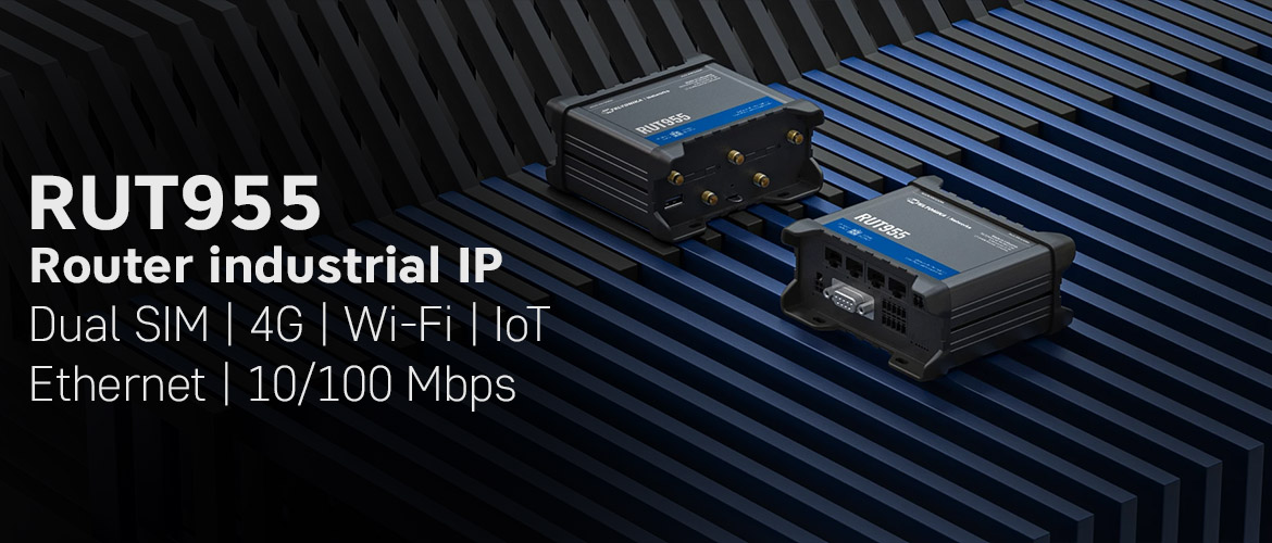 Router wireless teltonika rut955t033b0, 4g/lte, vpn, 2x sim, 4 porturi lan, 2.4 ghz, 10/100 mbps